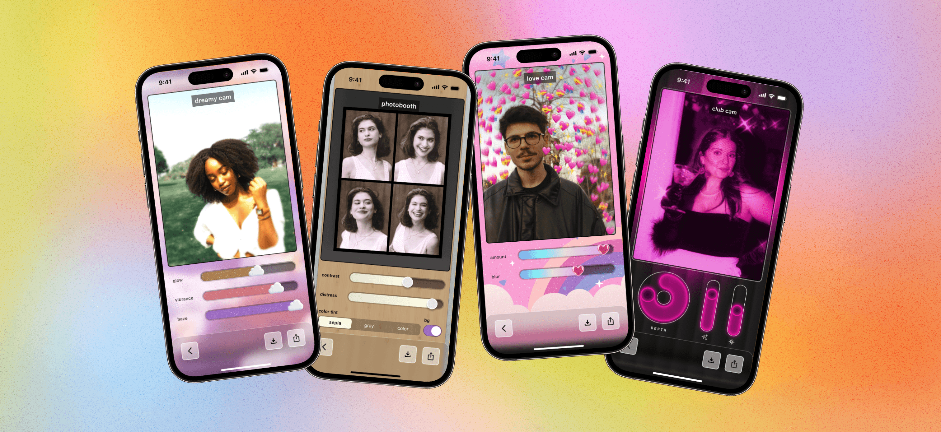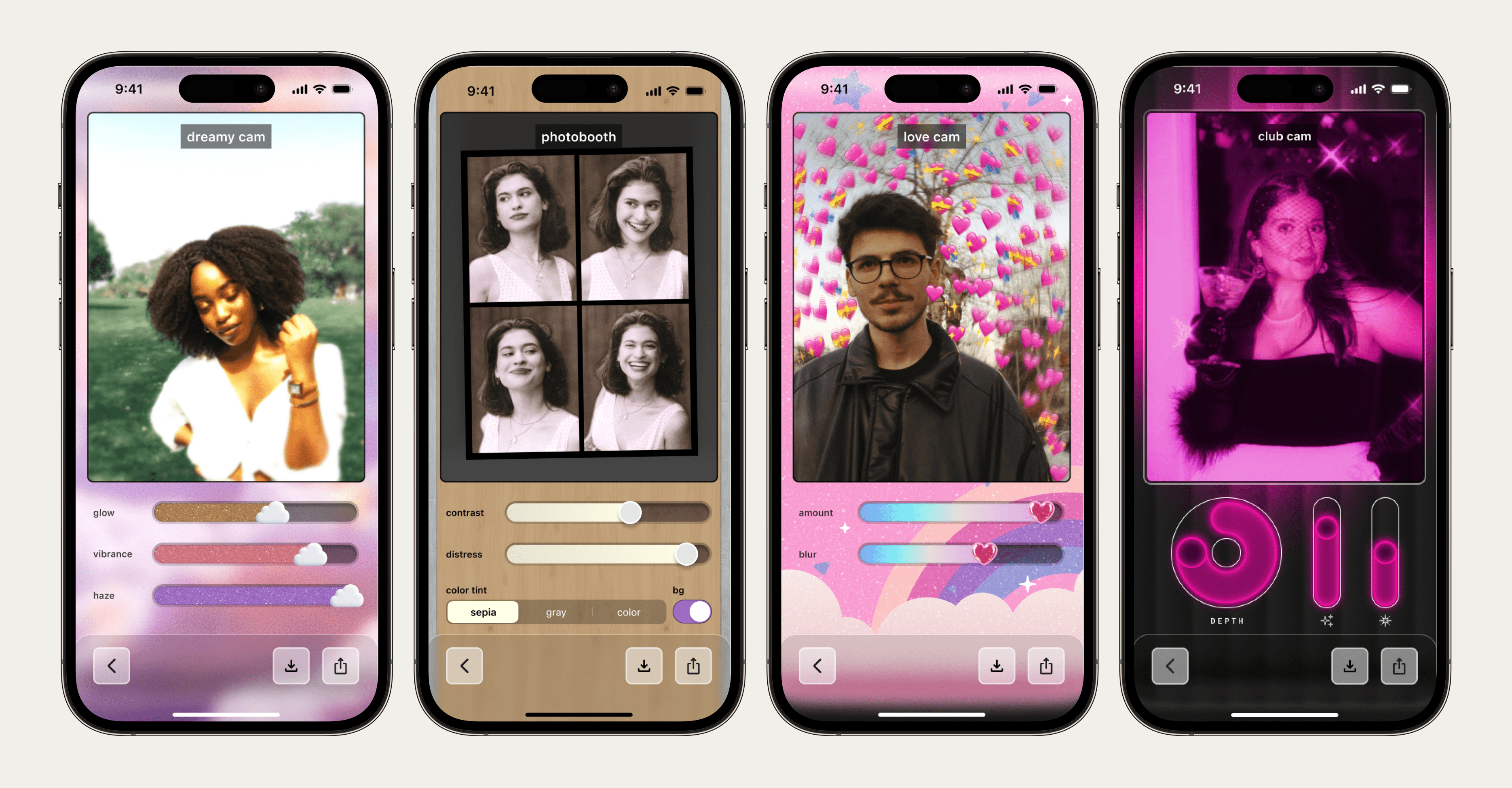 Final camera effects: Dreamy Cam, Photo Booth, Love Cam, Club Cam