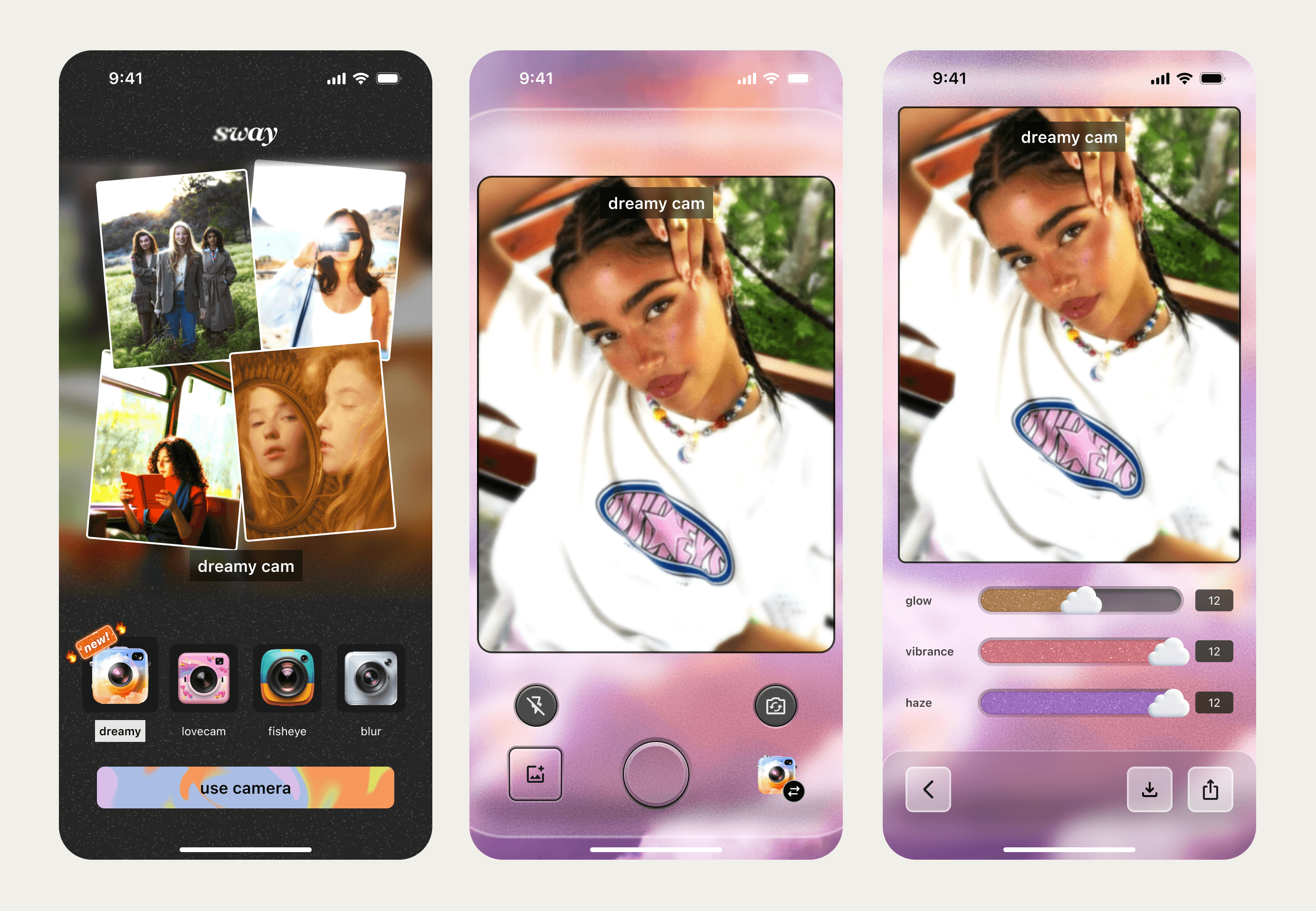 Dreamy Cam final UI designs